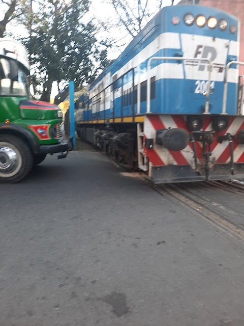 Una locomotora estaba transitando y chocó a un colectivo de la línea 33.